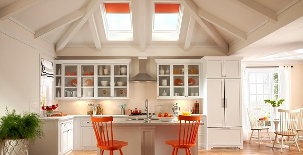 Skylights aren’t only windows in the ceiling, they are a portal to sunny blue skies, energetic rainstorms and enchanting starry nights. By allowing the sun to flow into living spaces, they provide the healing powers and mood enhancing benefits of natural light. Natural light has been proven to increase mood and productivity as well as reduce stress and anxiety. With the ability to provide up to five times as more light as a standard wall window of the same size, skylights drastically reduce the need for artificial light. The benefits of skylights aren’t just for the homeowner’s well-being; they extend to the look and feel of the home as well. Their inherent construction opens up the canopy of a room, making it appear bright, open and spacious.