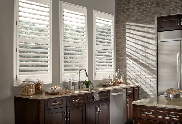 Since transitional homes are a blend of old and new, Shutters are a flawless window treatment to complement a varied combination of color palettes and mixture of eclectic tastes.