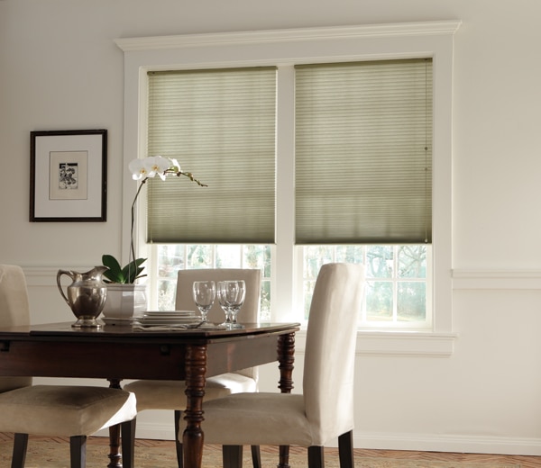 Single cell cellular shades have one row or layer of cells. These shades provide some insulation but are lower in R Value which is the measure of resistance to heat flow through a given thickness of material. Generally, the higher the R Value, the greater the resistance. Use these shades in places where insulation from heat and cold are not of prime importance. Since these Single Cells have a smaller profile, they are a good choice for doors. Single Cellular Shades only come in larger cell sizes such as 3/4″, which give your windows a clean and less busy look.