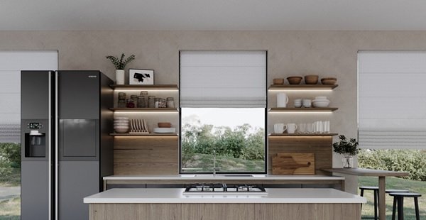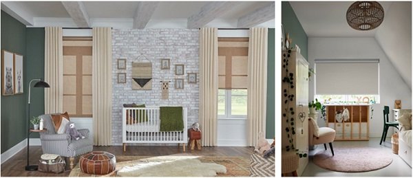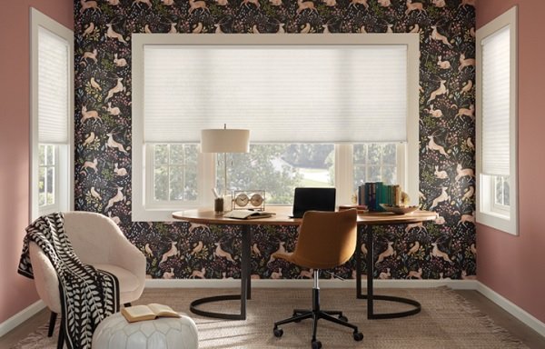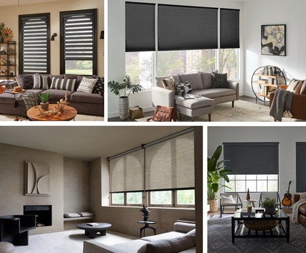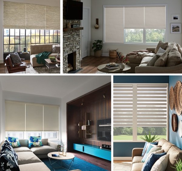 Motorized blinds and shades with smart automation are available in almost every style of window treatment, although there are some better suited to homes with children and pets. Cellular Shades are a lightweight option with minimal profile, ideal for rooms that the view inside and out are a priority. To add a little pattern, texture or a touch of nature, I recommend our Blindsgalore Woven Wood Shades and Blindsgalore Harmony Roller Shades.