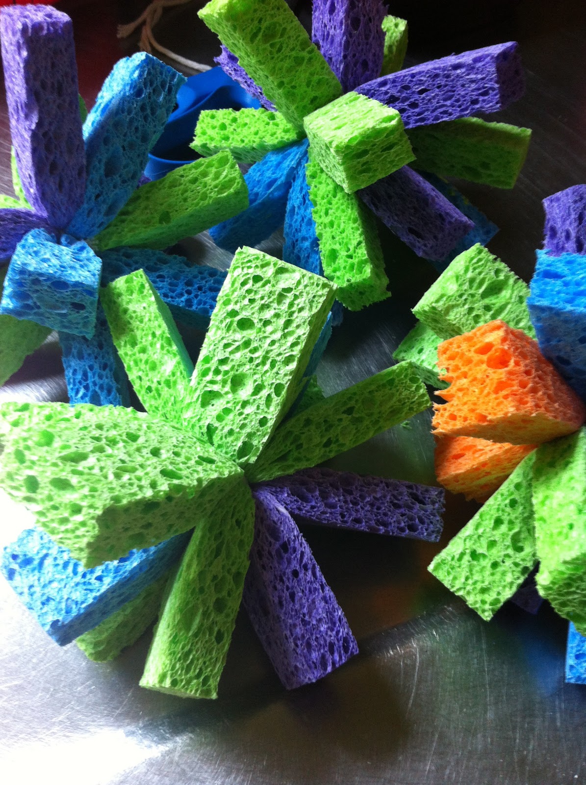 Cut up new sponges that have not been revived with water. Tie together the strips to make a starburst ball. Soak the sponges in cold water and cool off with “spongeball fights”. How easy is that to drive away boring and heat filled days?