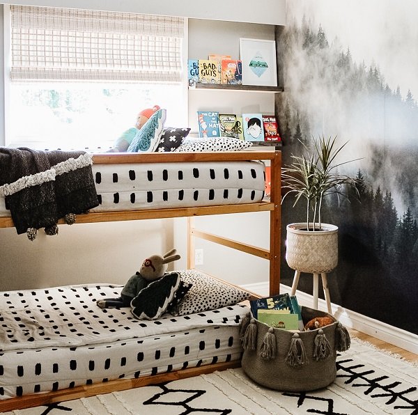 Paint is most likely the first thing you decide and thank goodness, it is the quickest and easiest way to change up a room, but do think ahead so the color can evolve with changing interests. Consider the paint combos you like as color dictates the vibe. You can go bright and primary or soft and subdued. Consider these hues as possibilities: a berry blast of lemon, pink and sky blue, a candy land mix of lavender, mint green and yellow, or the preppy look of navy blue, white and dark green.