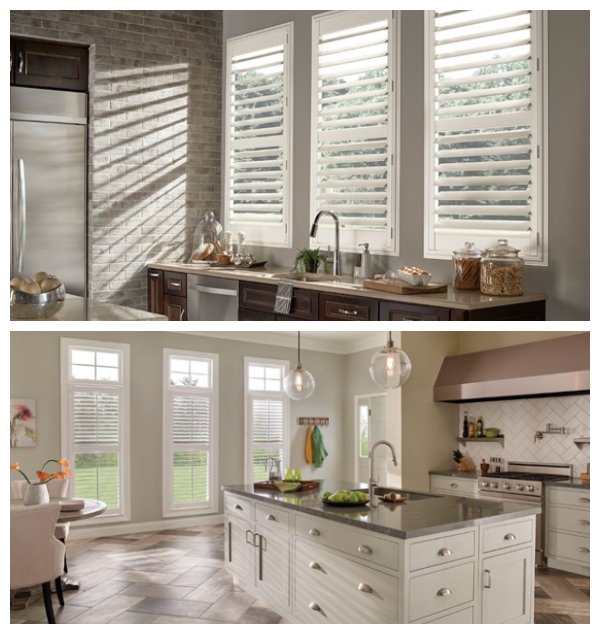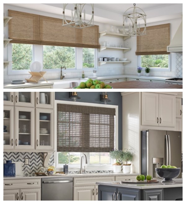 Keeping it simple with textured woven woods or simple white shutters sets the stage for the rustic, weathered look, combined with modern materials and sleek finishes, accented in your own personal “farmhouse ethic.”